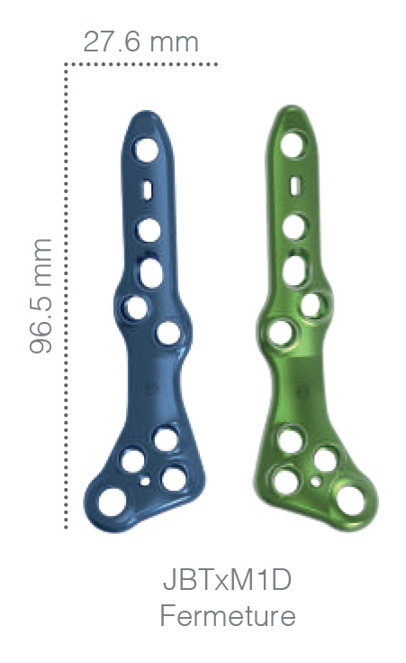 • Implant anatomique asymétrique (vert côté droit, bleu côté gauche)
