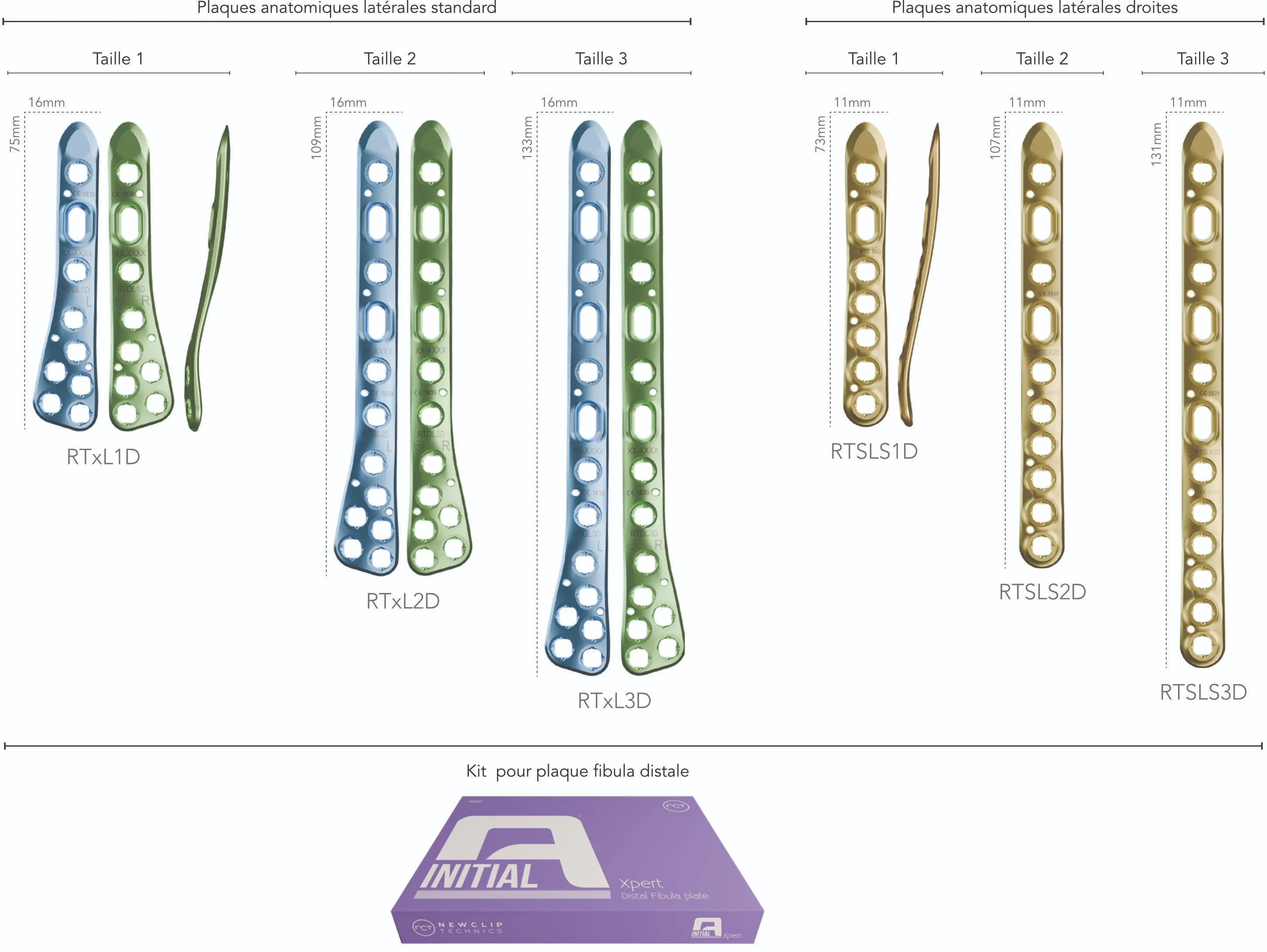 • Les kits Initial A™ Xpert - Fibula sont dédiés à la fixation des fractures, des ostéotomies et des pseudarthroses de la fibula distale et diaphysaire, ainsi que du tibia distal chez l’adulte.