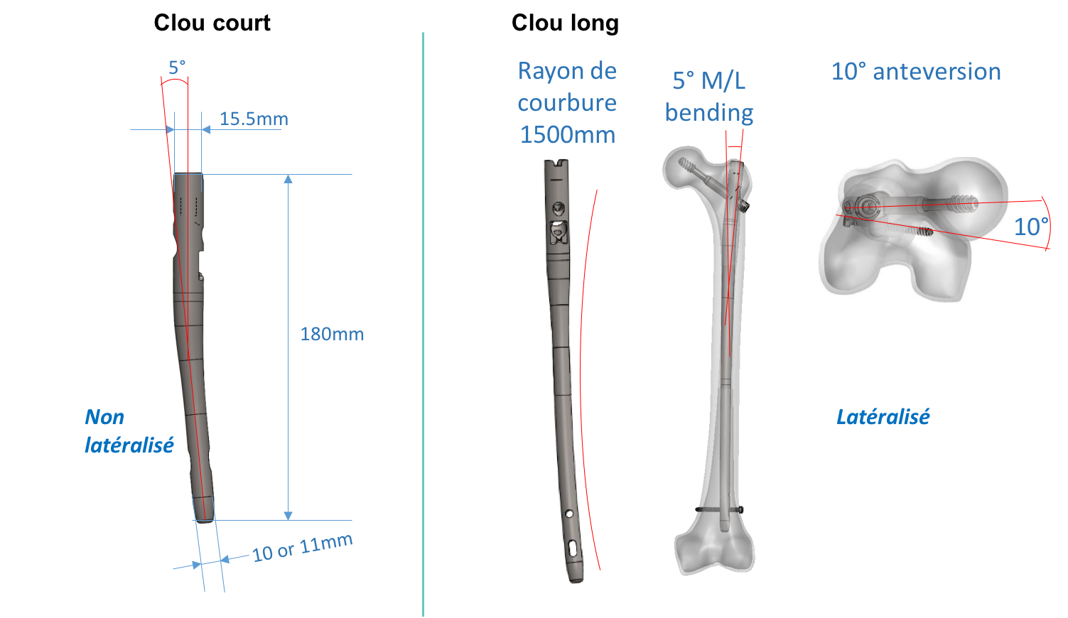 • Clou long ø11 mm, L280-460 mm par incrémentation de 20 mm (125°, 130°)