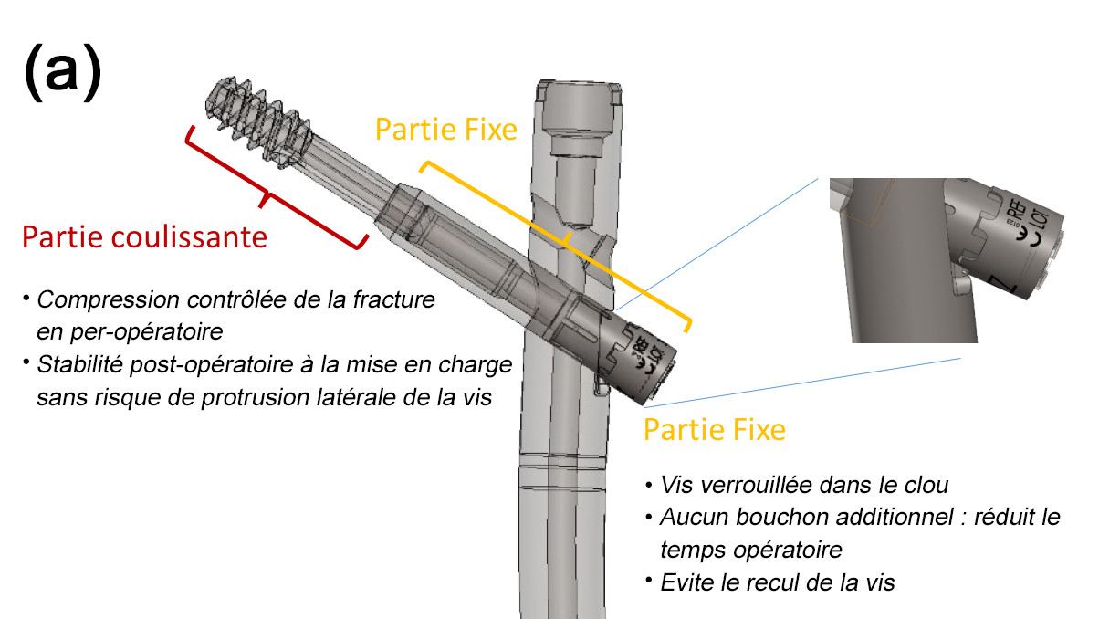 • Vis coulissante qui traverse le trait de fracture