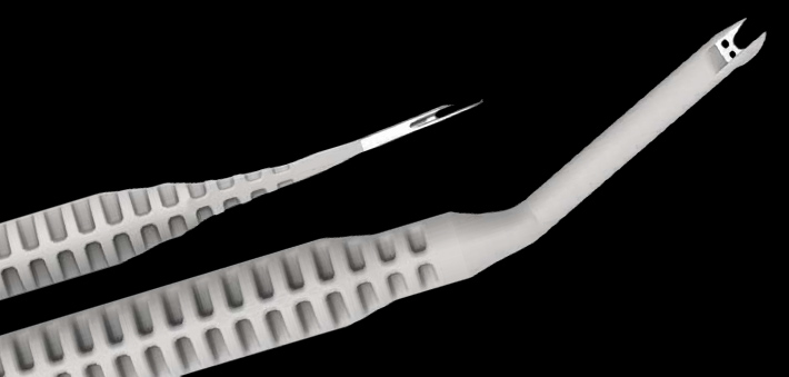 • Inclusion de la lame dans le design du couteau, positionnement non agressif pour les tissus avoisinants