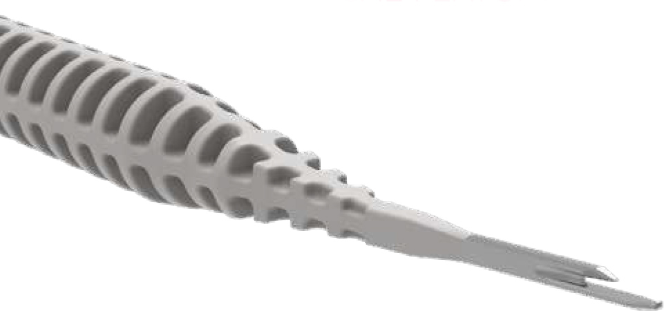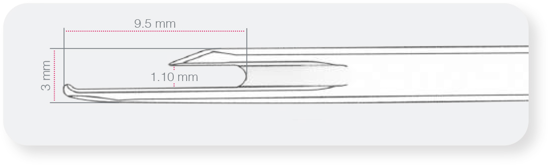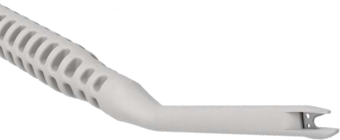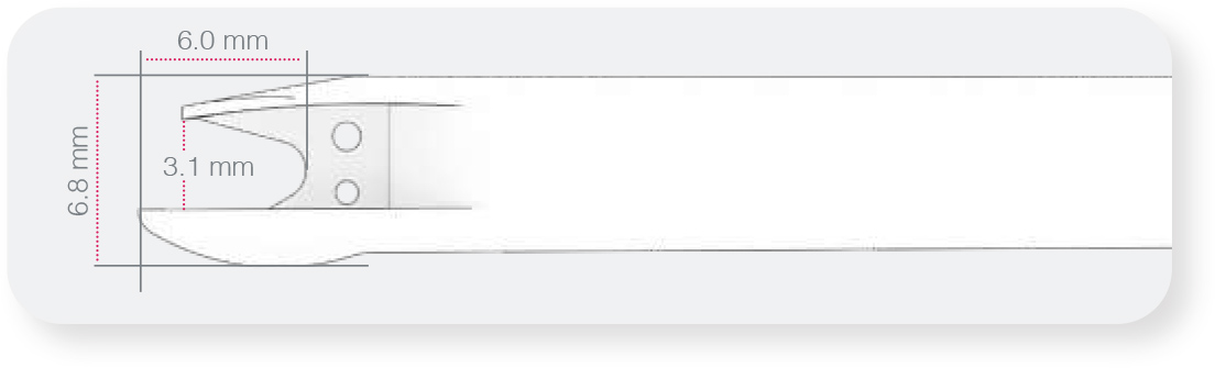 • Ergonomie de la partie distale, arrondis supérieur et inférieur, étudiée pour prévenir le risque de lésion des éléments anatomiques pendant la progression du couteau