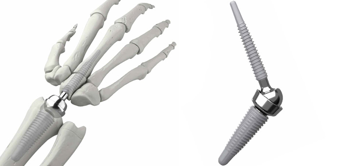 • Remplacement de l'articulation du poignet en cas de douleurs, défauts l'alignement ou d'instabilité dus à la polyarthrite rhumatoïde, l'arthrite traumatique, l'arthrose, la maladie de Kienböck ou un collapsus carpien.